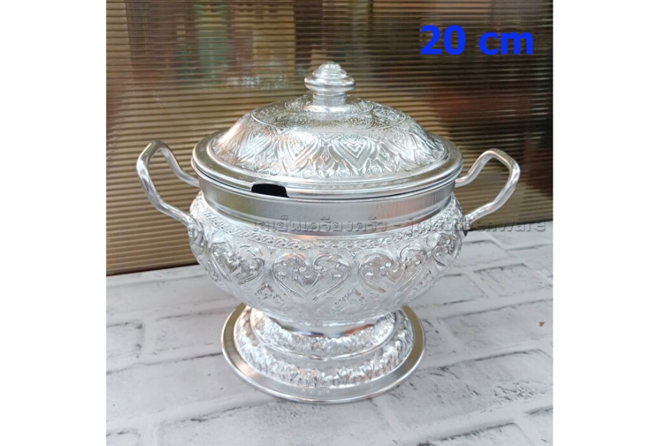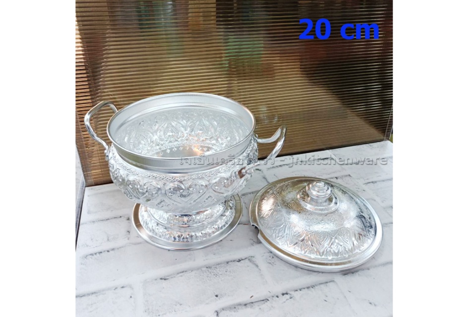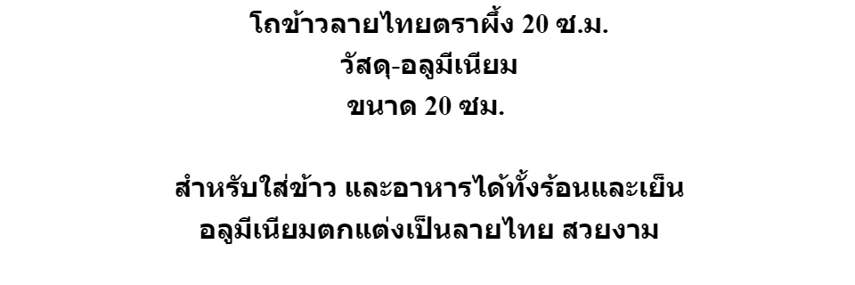 โถข้าวลายไทยตราผึ้ง 20 ซ.ม. วัสดุ-อลูมีเนียม ขนาด 20 ซม. สำหรับใส่ข้าว และอาหารได้ทั้งร้อนและเย็น อลูมีเนียมตกแต่งเป็นลายไทย สวยงาม