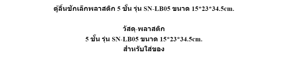ตู้ลิ้นชักเล็กพลาสติก 5 ชั้น รุ่น SN-LB05 ขนาด 15*23*34.5cm.