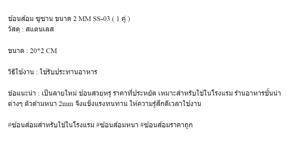 หมวดหมู่ | ช้อน-ส้อม-ตะเกียบ-คีบอาหาร |