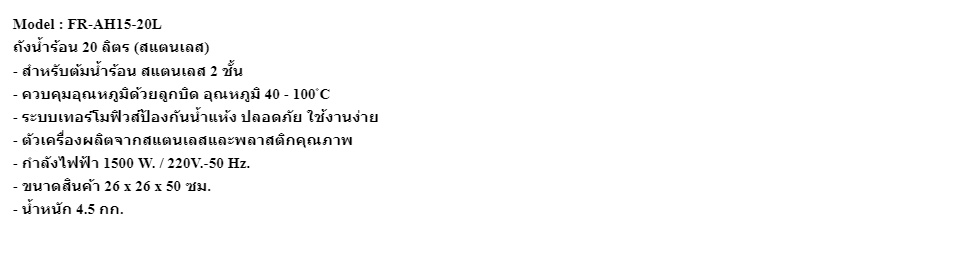 ถังต้มน้ำร้อน 20ลิตร(สแตนเลส) FR-AH15-20L
