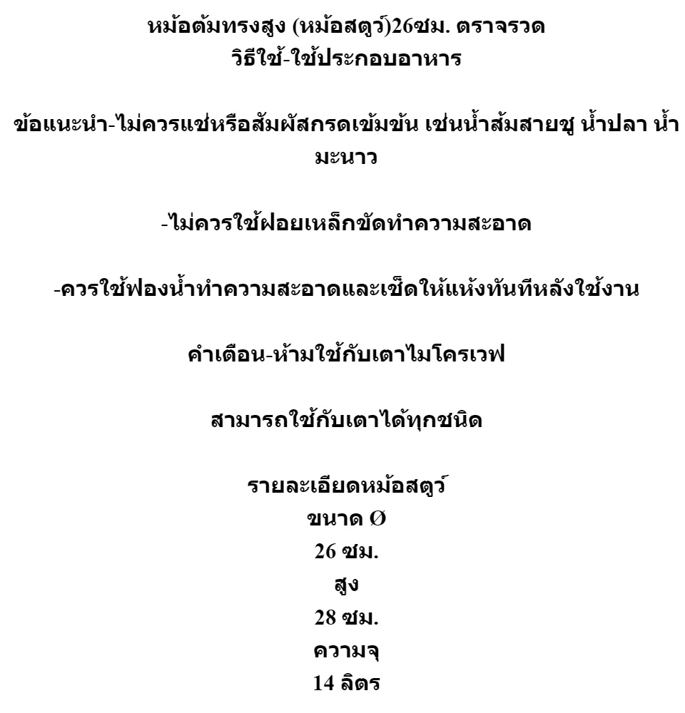 หม้อสตูว์ หม้อต้ม ทรงสูง 26 ซม…